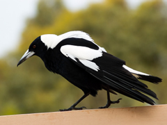 When you're walking through a small corner park with four green reusable bags of groceries in the middle of a sunny day and listening to talk radio with your face forward, you don't pose much of a threat. But there was a magpie yesterday whose midst I entered, and it wanted me dead.